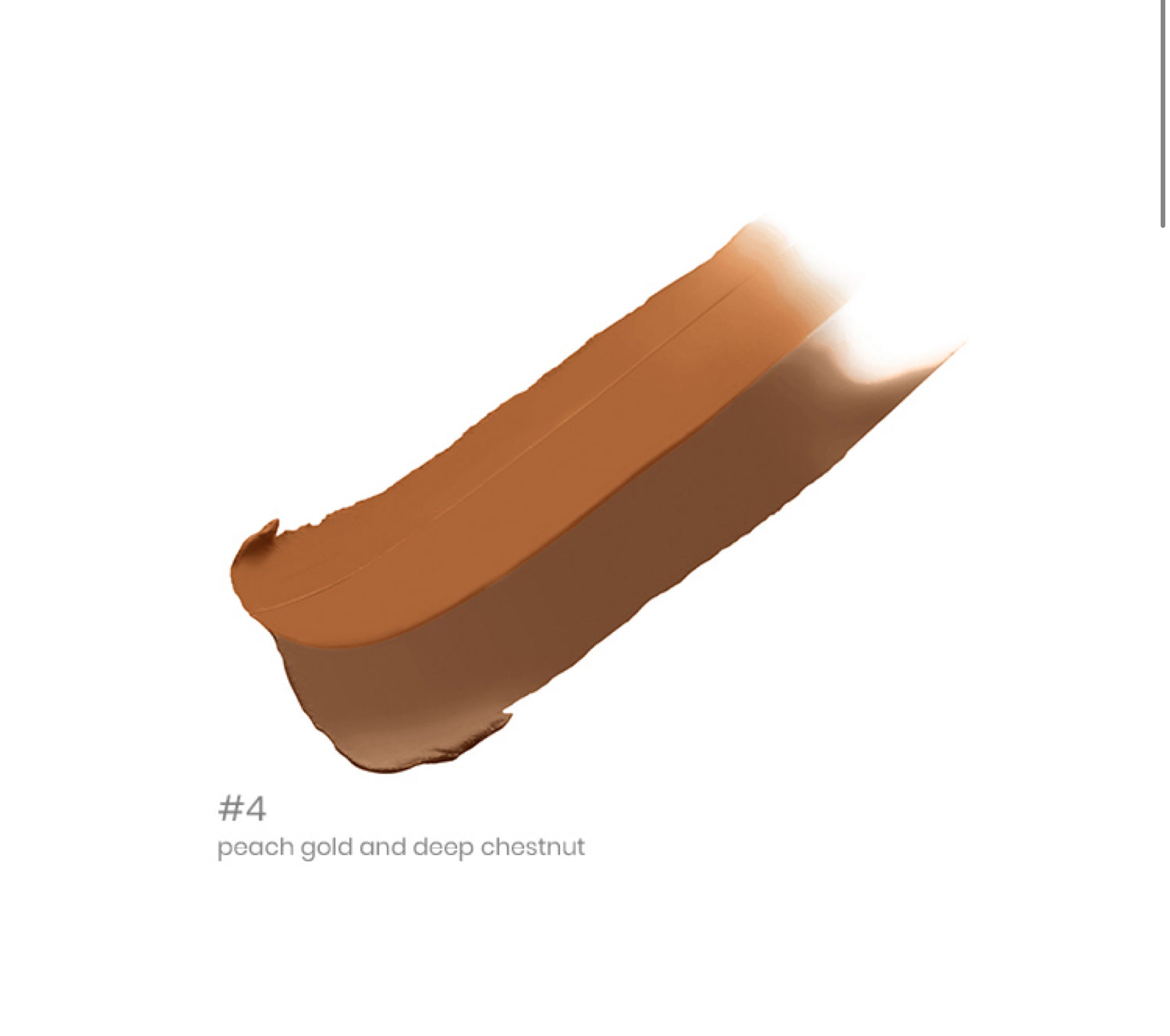 - #4 peach gold/deep; neutralizes grey in a deeper skin tone